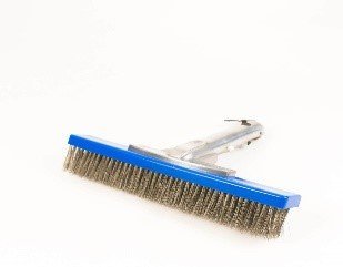 Cepillo con cerdas de acero inoxidable, diseñado principalmente para limpiar manchas difíciles en albercas con superficies duras.